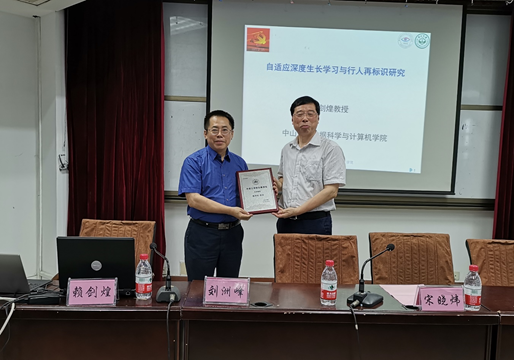 赖剑煌教授报告了自适应深度学习方法与行人再识别方法两方面的工作进展。自适应深度学习方法是一种新颖的半监督深度学习框架,称为深度生长网络(Deep Growing Learning, DGL),适用于视频监控等数据不断增长的对象识别问题。行人再标识(person re-identification)问题是目前视频监控、模式识别与计算机视觉领域的一个重要问题。报告重点介绍本团队在行人再标识方向的若干研究进展,包括了基于时空线索的行人再标识、特别是跨视域的鉴别成分分析、基于深度学习的再标识等方法。相关理论可应用于现实监控系统,对于图像搜索与匹配领域也具备一定借鉴意义。报告结束后,赖教授与在场师生就学术观点、人才培养、专业教育等方面进行了深入交流。