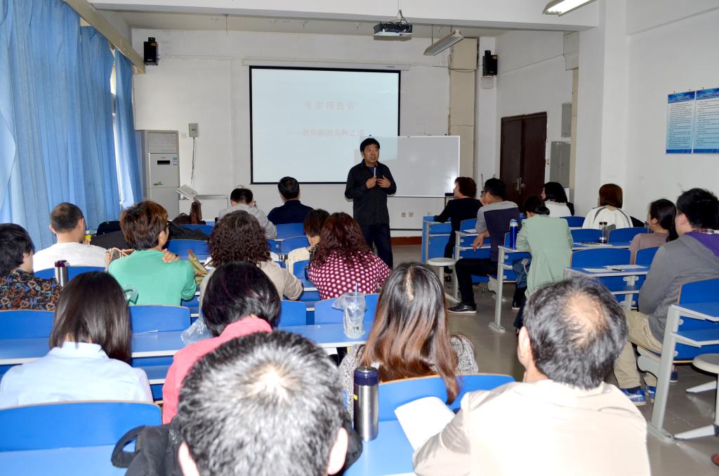 李雄诒教授以其幽默风趣的语言向大家阐释了教师的职业特点、教师的“为师之道”、如何坚守“为师之道”。旁征博引、深入浅出地阐述了“为师之道”的核心理念与精神价值,以例证说明作为教师只有爱岗敬业、教书育人、坚守师道、铁肩担道义,通过对教育事业的无私奉献和对学术的不懈追求来实现个体生命的终极价值。李雄诒教授精彩的演讲博得大家阵阵掌声和强烈共鸣。