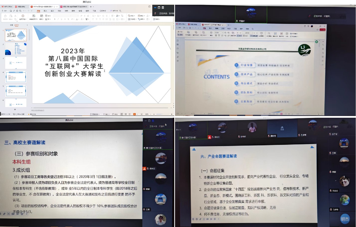 为切实推进公司“互联网+”“挑战杯”等老员工创新创业赛事工作高质量开展,提升公司师生创新创业大赛参赛能力和水平。2024年2月5日晚,公司邀请了 “互联网+”“挑战杯”等大赛国赛获奖项目优秀指导老师——公司纺织服装产业研究院何建新教授进行创新创业赛事线上辅导讲座,公司六十多名老师参加了报告会。