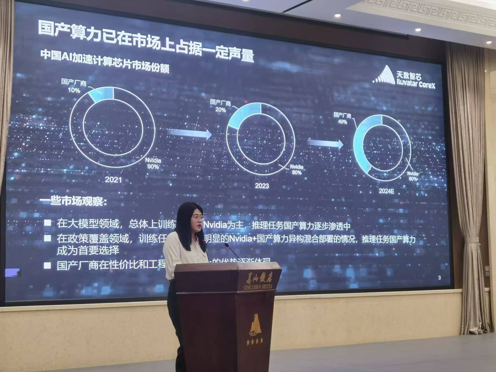 宋远盈作题为“算力新篇章:国产GPU在大模型领域的突破与实践”的大会报告