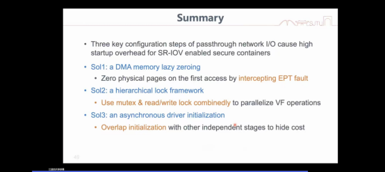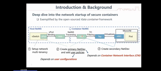 在报告中,江教授围绕当前云原生应用中日益重要的安全容器技术,系统剖析了其在高并发网络启动场景下面临的性能瓶颈与优化挑战。他以与阿里云合作的研究项目为依托,深入分析了软件与硬件层面的容器网络性能测量结果。报告指出,在支持网络功能的场景下,安全容器启动性能显著下降,其中firecracker性能最为受限。江教授团队通过锁竞争优化、并发控制策略及池化网络设备的预创建等方法,有效缩短了启动时间,并显著降低了CPU资源开销。