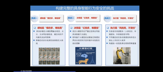 讲座主体部分,王宁教授系统介绍了其团队构建的“物信融合”安全架构。该框架注重将物理世界的安全约束与信息空间的大模型推理能力相融合,旨在实现对具身智能系统中由大模型“幻觉”所引发的安全问题进行层次化、嵌入式检测与防护。他还重点展示了团队在无人机协同安全、自动驾驶系统风险识别、安全思维链构建等方向的最新研究成果,相关学术论文已在多个国际高水平会议发表,并形成了一系列具有应用价值的技术专利。