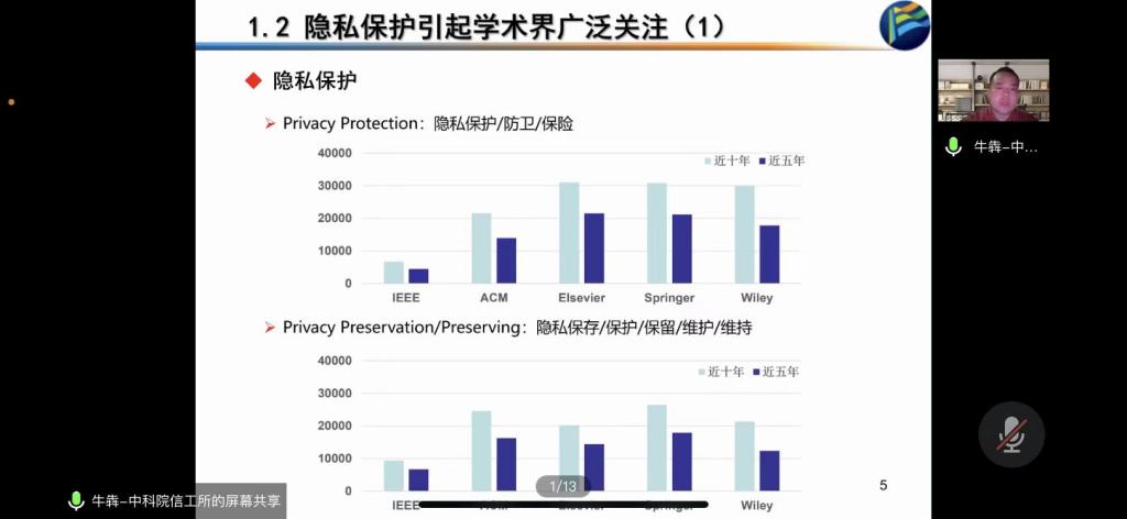 5月15日,应公司研究生处和公司邀请,中国科公司信息工程研究所牛犇博士为公司师生做了题为《隐私计算研究进展及发展趋势》的学术讲座。讲座由BSports经理张书钦主持,BSports教师和研究生在线聆听了讲座。