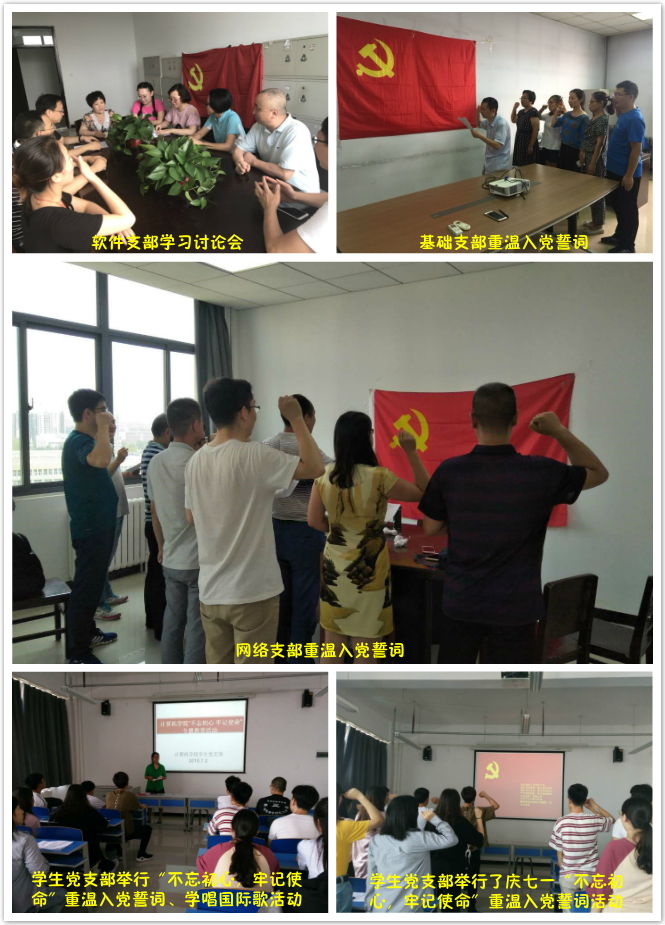 各个支部分别传达了公司党委下发的《中共河南省委组织部关于在“七一”期间认真组织开展以“不忘初心、牢记使命”为主题的支部党日活动的通知》,各个支部还开展了“庆七一”重温入党誓词仪式和讨论会。