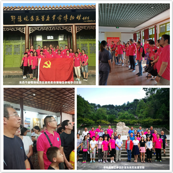 大别山是中国革命重要发源地、主要活动地和走向全面胜利的战略转折地,是与井冈山、太行山齐名的三大革命历史名山之一。巍巍大别山,见证着光荣与梦想;惶惶奋斗史,承载着理想与担当。三天的参观学习,党员和教职工们先后来到鄂豫皖苏区首府革命博物馆、鄂豫皖苏区将帅馆、中共中央鄂豫皖分局旧址、红四方面军总部旧址、鄂豫皖苏区革命烈士陵园、许世友将军故里等地进行现场学习和感受。回顾了在艰苦卓绝的年代里,大别山儿女高举红旗始终不倒的英雄壮举, 亲历和见证了中国革命的完整历程,感叹大别山的中国共产党人为中国革命胜利做出的重要贡献。