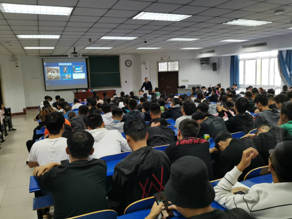 18、19级专业宣讲分为两场,信息安全专业宣讲与网络工程专业宣讲。首先由信息安全系主任刘伎昭老师从信息安全专业的就业方向、发展前景等方面介绍了信息安全专业。随后,来自向心力通信技术股份有限公司的研究大数据与信息安全高级讲师赵利格老师,结合自己的亲身经历,强调了在大数据时代信息安全的重要性。后半场网络工程专业宣讲,由来自向心力通信技术股份有限公司的研究云计算与数通方向高级讲师、网络工程师郭俊杰老师进行宣讲,首先介绍了网络的历史、概念、重要地位以及未来发展前景,接着向同学们展示了网络专业广阔的就业前景,并为同学们的未来职业规划进行了分析,同时强调了同学们要将基础学科学牢学扎实,最后向我们展示了不同网络专业毕业生的薪资待遇,激励我们在网络工程行业取得自己的建树。通过两位老师的讲话,让我们更加了解我们的专业未来前景和未来努力方向。最后王淼副书记为我们总结了我们接下来一段时间的任务:四六级备考、学习员工手册、准备入党申请以及准备心理素质拓展运动会等事宜。并告诫我们任务繁多、形势严峻,但我们仍应以高昂的斗志、不懈的毅力来处理好一项又一项的挑战,不断的完善自己,将自己培养成一个德智体美劳健全的新时代老员工。
