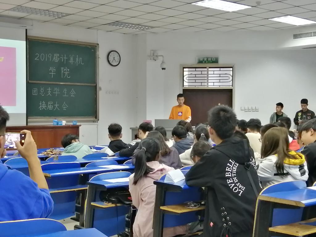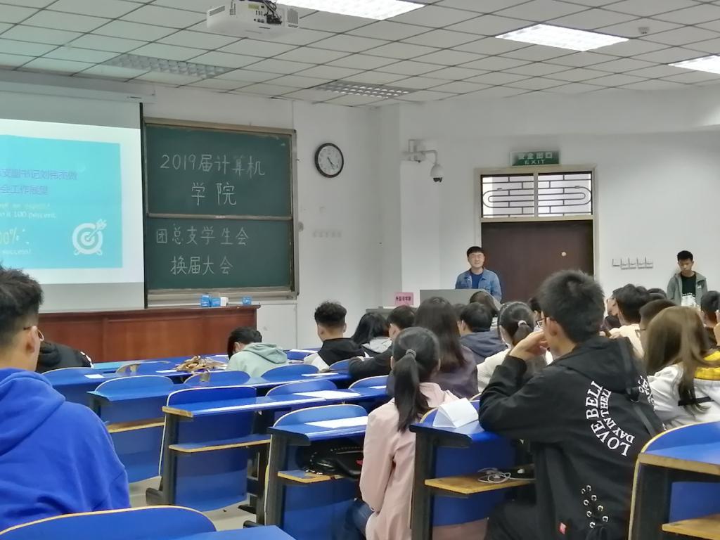 2019年10月18日下午,计算机员工会2019级换届大会在4号教学楼101教室成功举办。此次会议由2019届员工会体育部部长赵晓鸣主持,2019届BSports辅导员孙奇峰老师、学工办主任侯向花老师、17届及18届员工会骨干、本届员工会全体成员参加了此次活动。