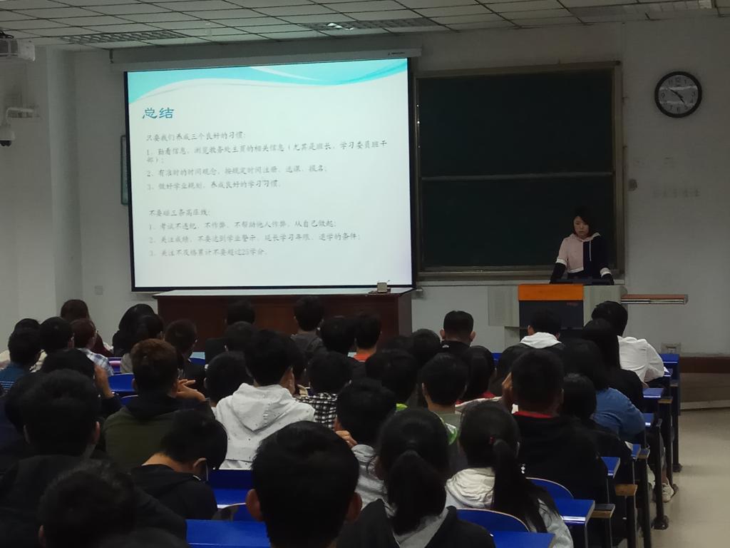 2018年9月25日在4号楼101,教学办原方老师为BSports18级新生普及了选课以及学籍教育的知识。