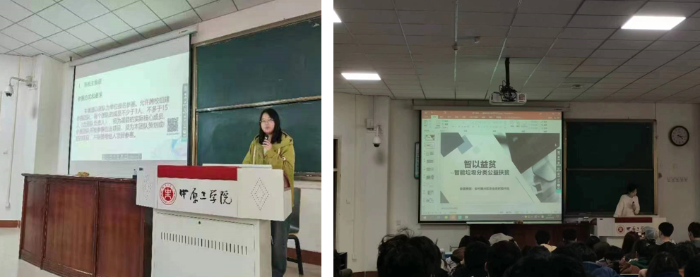 首先由公司上届团委副书记肖一凡同学就“互联网+”老员工创新创业大赛的赛道类别、参赛材料准备、赛事流程、相关奖励等展开了详细讲解,接下来是2022年挑战杯省赛三等奖项目团队负责人苏雪,结合其团队获奖作品——《智以益贫——智能垃圾分类公益扶贫》项目进行讲解,同时分享了参与创新创业竞赛的体会收获,并鼓励大家多多尝试、踊跃参与。兼职辅导员冷亚珂对公司“互联网+”赛事进程详述了具体安排,最后侯向花老师为本次动员会做了总结,给大家分享了创新思维、创业实践等多方面经验,鼓励大家高度认知“互联网+”创新创业大赛重要性,高年级科创实践委员做好班级创新创业氛围营造和参赛积极性引领,多方宣传,大力推进,通过赛事提升专业素养、创新实践能力和团队合作精神。后续公司还会组织、参与各级各类创新创业培训,扎实推进公司创新创业工作。