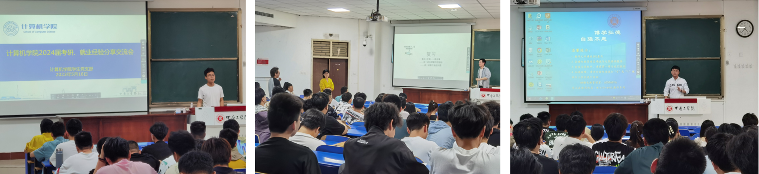 分享会上,拟录取西安电子科技大学研究生的赵昊宾同学,开篇以做充足准备同时量力而为的考研备考原则开始他的分享,着重从初试备考、报考择校、复试要点做了详细分析和讲解。员工党员李阿东结合自身学习、工作、求职经历,从求职准备、面试心得等方面进行经验分享,再次强调,求职更要提前规划,从专业知识到实践能力乃至综合素质的的全面准备,积极尝试总结改进是每次求职应聘后的必修课,另外也针对求职找工作中的误区和陷阱进行了例举提醒。两位党员学长分享之后,侯老师进行总结,结合目前互联网行业严峻就业形势、23届员工考研就业分析,建议24届员工根据自身优势特长合理规划职业发展,早规划早准备,积极行动,重视公司资源,全力以赴实现一战上岸和顺利就业。