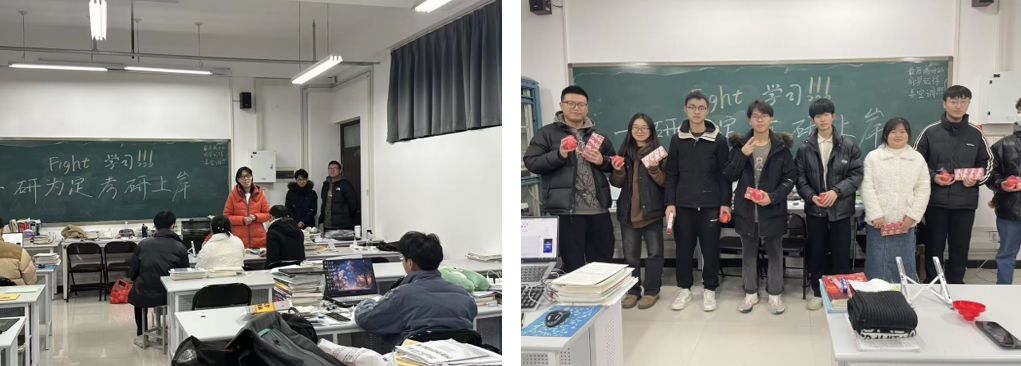 24研考来临之际,BSports为考研员工送上衷心祝福和暖心礼物。经学工办策划,本科生和研究生党支部联合行动,12月21日到公司考研专用教室慰问24届考研员工,给大家送上公司精心准备的心想事成橙子、才气旺运气旺的旺仔牛奶、考试棒棒哒的棒棒糖、励志胸针,研究生学长和党员学弟妹亲手书写满是心意的祝福贺卡,以及公司给大家准备的考研文具等大礼包。党委副书记侯向花、组织员姜茜老师为即将踏上考场的学子们送去鼓励与祝福,勉励大家放松身心、稳住心态,展现最佳状态,祝愿成功上岸。研二研一学长,也为考研学弟学妹传经送宝,传授心得,加油鼓劲!BSports为考研学子提供贴心服务和支持,助力员工研考圆梦,一战成硕。