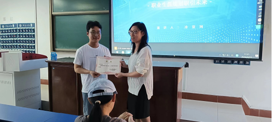 首先,由全国首届职业规划大赛河南省总决赛就业赛道金奖获得者、数学与信息科学公司2022级研究生冷亚珂开讲,他从个人参加全国老员工职业规划大赛经历入手,解析了大赛文件,分享了参赛过程中的经验以及收获。冷亚珂围绕职业发展启蒙、规划、行动等内容,鼓励大家注重专业积累、勇于实践探索,不断提升个人综合素质,在学习、就业能力等方面不断攀升。