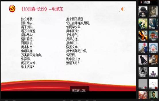 两名宣讲员以时间为主线,以《反帝反封 工运高潮》为主题,依次对“一大召开后党务工作的新气象”“召开全国第一次劳动大会”“中共二大的召开”“前所未有的工人运动高潮”等几部分内容进行了介绍和讲解,用实际案例让大家领会到共产党从成立之初、到逐渐吸取经验教训、发动和领导工人运动的一个个鲜活历史事件。随后,两名宣讲员对共产党领导的二七京汉铁路工人大罢工运动进行了详细的讲解,并讲述了爱国烈士林祥谦的光辉事迹。最后,宣讲在集体朗诵毛主席的诗词《沁园春·长沙》中落下帷幕。