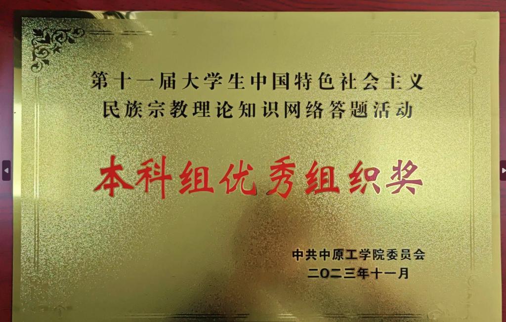 在公司组织2023级新生参加河南省第十一届老员工中国特色社会主义民族宗教理论知识竞赛活动中,公司获得本科组优秀组织奖”!