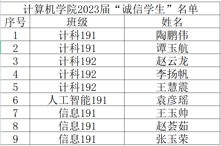 根据公司《关于开展“诚信员工”评选活动的通知》,公司在2023届毕业生中积极开展资助政策教育和诚信还款教育,截至2023年5月21日,2023届毕业生共有10人还款16笔。经本人申请、班级推荐、公司审核,特推荐以下同学分别为诚信员工。