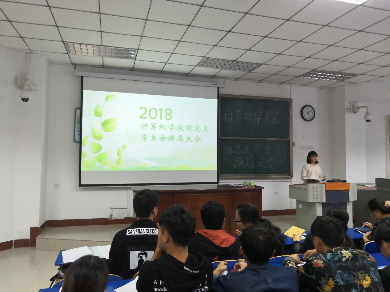 大会开始由于倩静老师发表开幕词,提出员工会成员要从严要求自己,在同学间树立起榜样。其后,副主席徐晓从加强组织建设、完善制度、整理档案、细化各部职责、学习氛围等方面,总结报告了2017至2018学年员工会工作。团总支副书记吕帅在做述职报告时强调,要加强精神建设,加强新媒体建设。团总支员工会副主席吴梦莹表达了对老师与同伴的感恩,对新鲜血液与未来发展寄予厚望,“聚是一团火,散是满天星”。2018-2019届员工会副主席刘晨虹在做工作展望时强调员工会的奉献精神与集体的凝聚力。接着,各位老师为员工会成员颁发工作证,正式进行换届仪式。最后,由2018-2019届团总支员工会副书记邢正路带领本届员工会成员进行庄重的任职宣誓。
