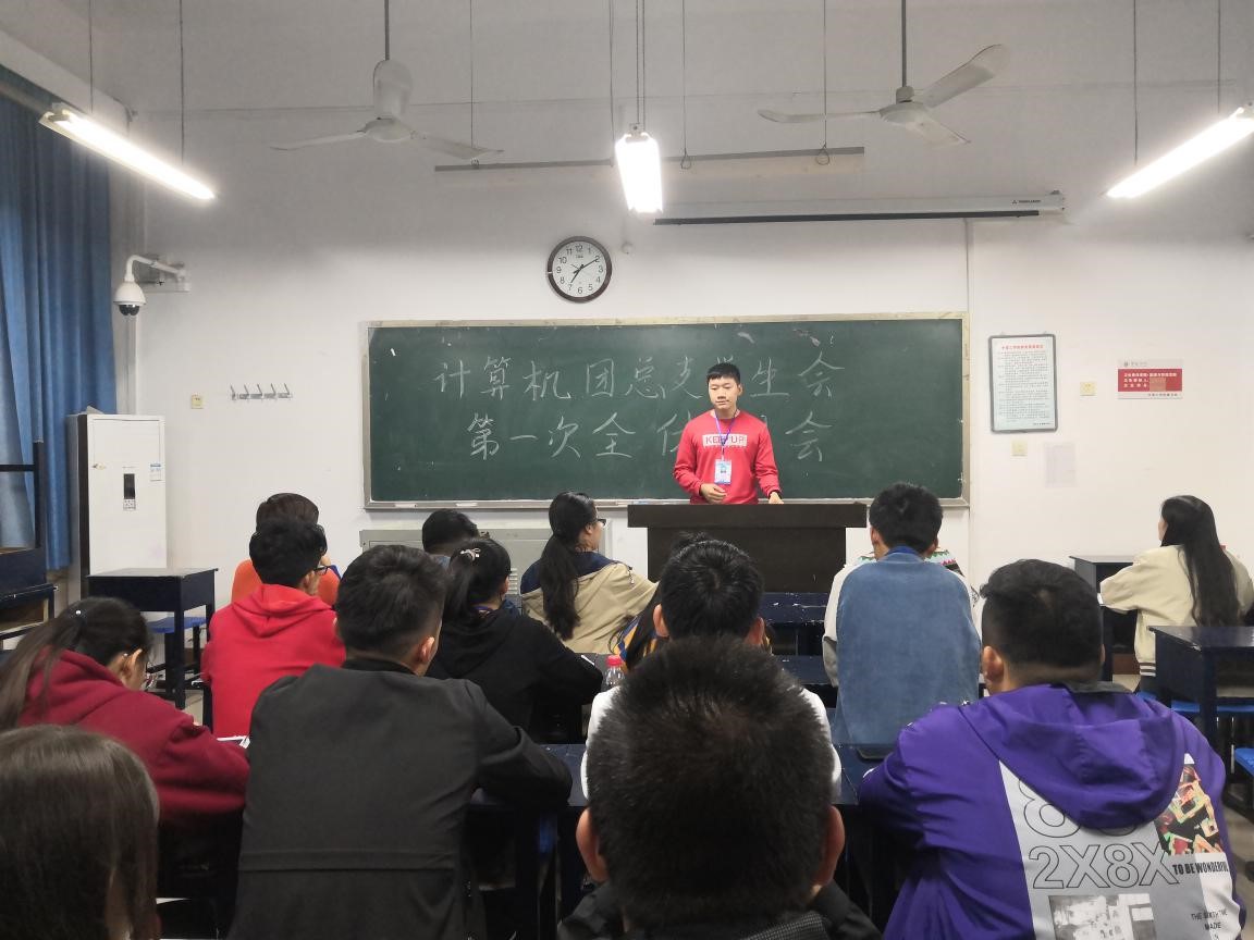 2018年10月30日星期二晚,计算机团总支员工会第一次全体例会在11号楼106室成功召开。会议由计算机团总支员工会副主席邢正路主持,辅导员于倩静老师以及2018级团总支员工会全体成员出席本次例会。