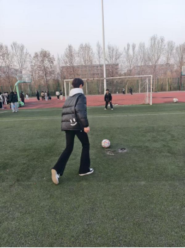 半场对抗环节更显热闹:队员们或带球突破、或默契传球,即便偶尔出现 “乌龙” 或失误,也会引发一片善意的笑声。守门员舒展身体扑救的身影、进攻方全力射门的姿态,让绿茵场充满了青春的跃动气息。活动间隙,大家围坐交流,轻松的氛围让原本陌生的同学快速熟络起来。