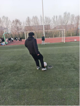 赛场之上,足球在学子们的脚下传递:定点射门区,有人摆球、助跑、起脚,足球擦着门柱入网时,场边瞬间响起叫好声;初次尝试的同学即便射偏,也在同伴的鼓励下笑着继续挑战。