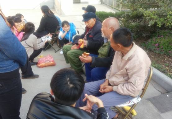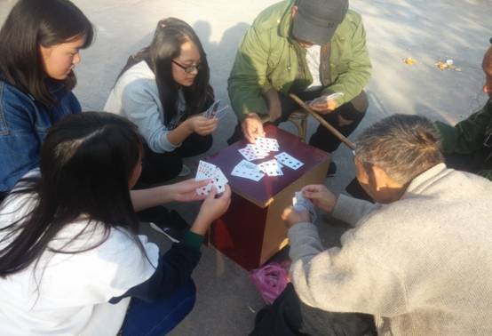 学员们陪老人打扑克