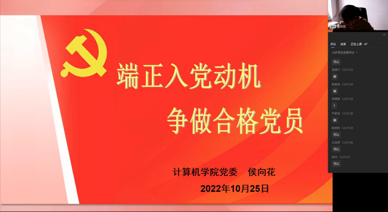 在课程中,侯老师以《端正入党动机,争做合格党员》为主题,讲述什么才是正确的入党动机、怎样端正入党动机等入党必须首先面对的关键性问题。