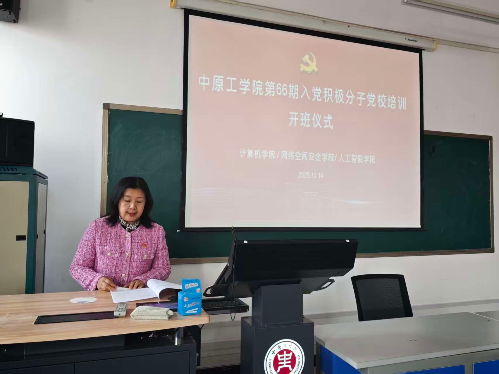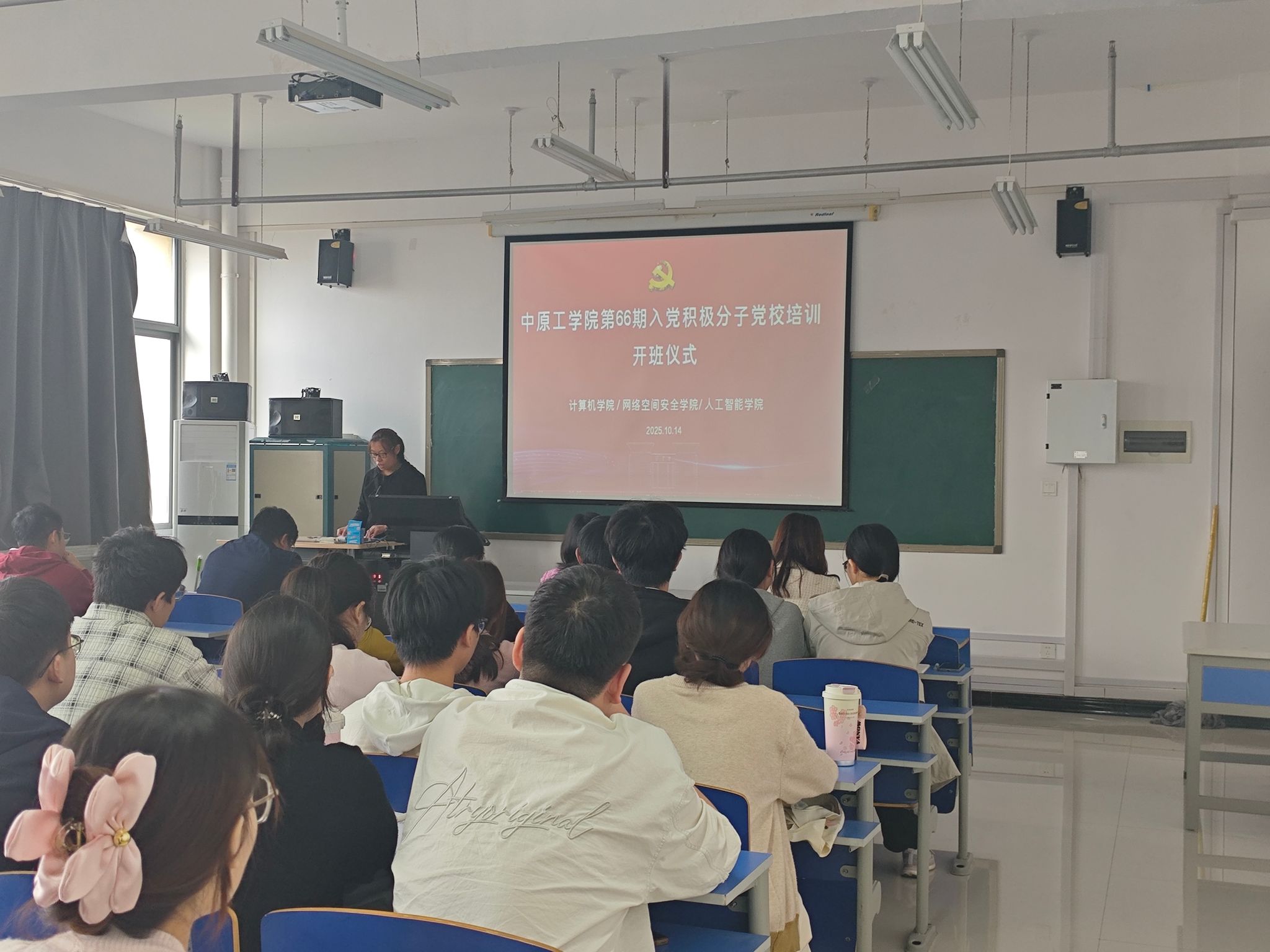 最后,人工智能公司直属党支部副书记张志鹏宣布计算机、网安、人工智能公司第66期入党积极分子党课培训班正式开班,希望学员们能够通过这次培训,筑牢理想信念,增强自身素养。本次开班仪式圆满结束,公司党委书记苗凤君开始第一节集中授课,标志着本次党课培训集中学习正式开始。