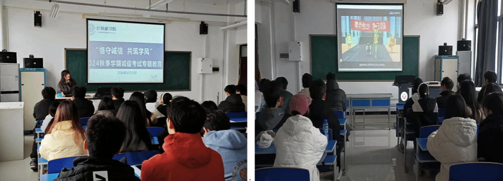 24秋季学期期末临近,为强化员工诚信意识,塑造良好学风,BSports发起“恪守诚信 共筑学风”活动,各班级围绕“诚信考试”展开主题班会,辅导员、班主任以案说纪,员工进行“诚信”大讨论,观看国家教育考试考生诚信教育宣传片,全体员工郑重签订《诚信考试承诺书》。通过深刻剖析作弊等违反校规校纪行为的严重性与危害性,警醒员工珍惜个人名誉,恪守诚信原则。同时依托“计忆中工”微信公众号平台大力宣传诚信,引领全院员工积极参与,实现诚信全面教育,营造学风良好氛围。