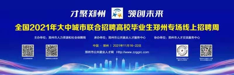 各位好,结合郑州市当前疫情状况,郑州市人力资源和社会保障局定于2021年11月16日-11月22日举办“全国2021年大中城市联合招聘高校毕业生郑州专场线上招聘周”活动。员工可以直接在线上填写报名表,现场线上企业一对一面试招聘,请大家积极参与!